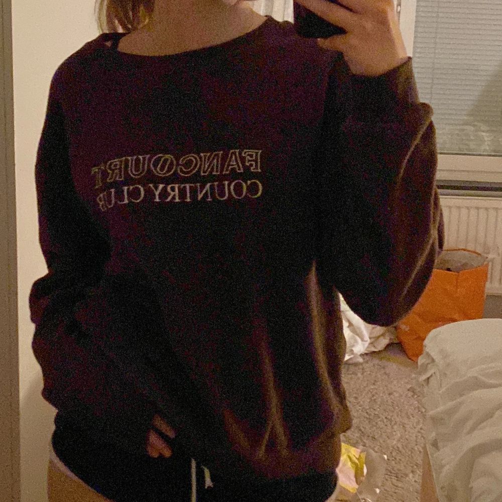 Dark brown fuzzy sweatshirt embroidered in white Fancourt Country. Such good quality doesnt even feel like its from shein. Sweatshirt- 50 Cotton 50.